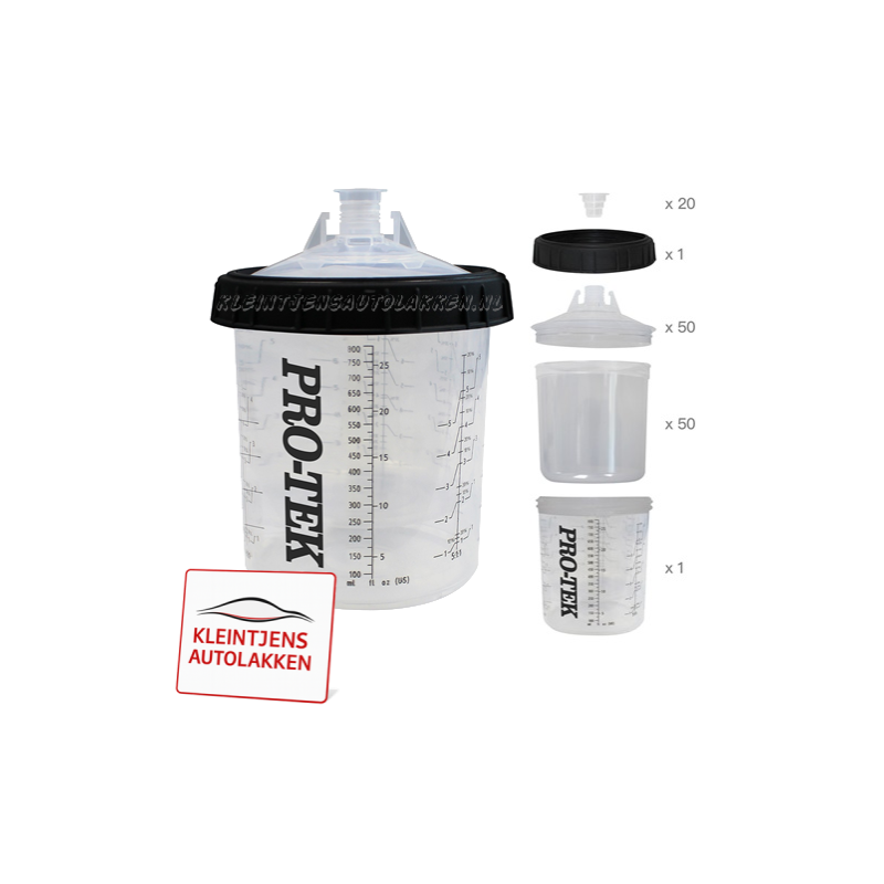 PRO-TEK 180 ml Flexible Paint Cup System (125 micron) – 50-delige Set