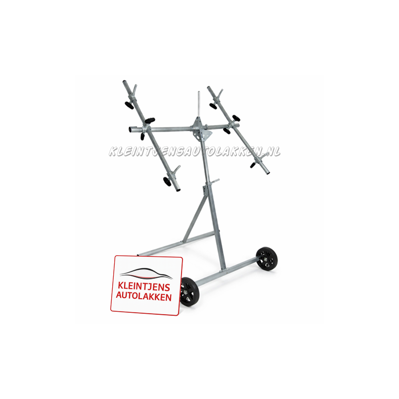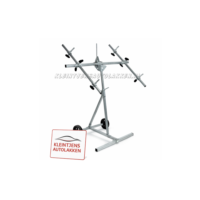 Deze draaistandaard met 2 armen is een praktische en stabiele oplossing voor het professioneel schuren, spuiten en bewerken van carrosseriedelen zoals autodeuren, motorkappen en plaatdelen. Dankzij het draaibare en ruimtebesparende ontwerp werk je efficiënt en ergonomisch, zowel in de werkplaats als in de spuitruimte.