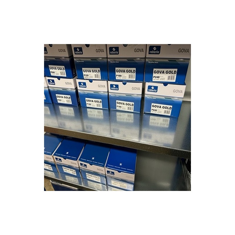De Roberlo Gova Gold P320 schuurschijven zijn professionele schuurschijven met 15 stofgaten en klittenbandbevestiging, ontwikkeld voor extra fijn en stofvrij schuren. Met een diameter van 150 mm en een korrel P320 zijn deze schijven ideaal voor het fijn matteren van laklagen, primers en plamuur ter voorbereiding op het spuitproces.